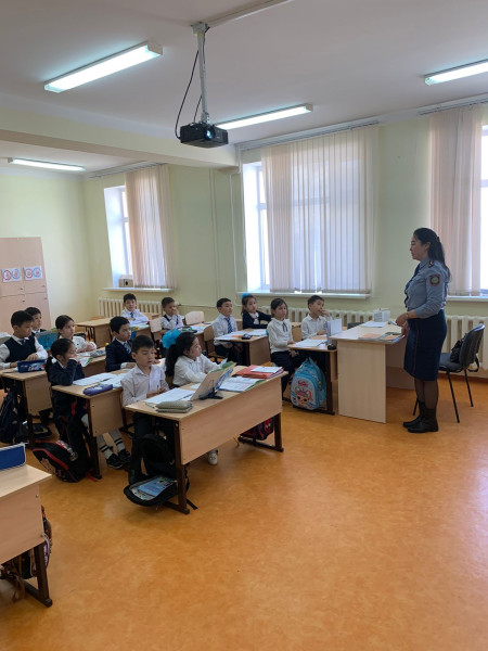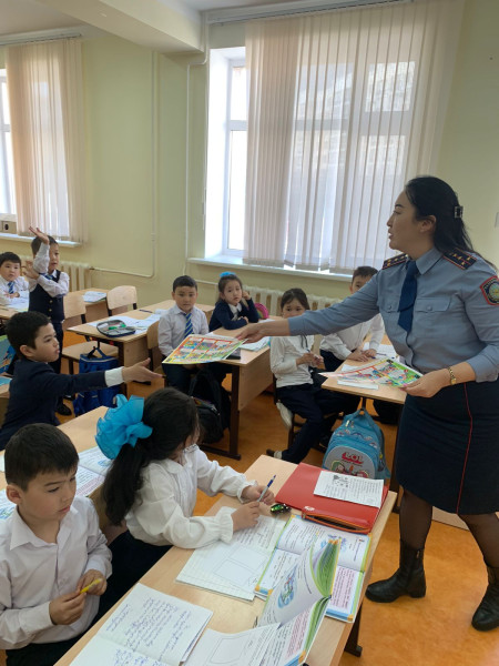 Мектебімізде “Балалардың жолдағы қауіпсіздігі”республикалық жедел-профилактикалық іс-шара аясында ЕАПБ полиция капитаны Нурмаганбетова Д. оқушылармен кездесу өткізді. Іс-шара жол көлік жарақаттануының алдын алуға, көшелер мен жолдардағы қауіпсіз мінез-құлыққа байланысты бағытталған. Жолдардағы жағдайды тұрақтандыру үшін кәмелетке толмағандардың жол қауіпсіздігінің негізгі ережелері туралы ақпарат берілді.