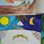«Суреттер сыр шертеді» кезеңінде үй тапсырмасы ретінде «Көксерек» шығармасынан ұнаған эпизодтың мазмұнын ашатын тақырыптық сурет салу берілген болатын. Топ мүшелерінің бірі ортаға шығып, салған суреттерін қорғады.